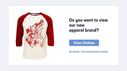 - The website displays a message designed to guilt-trip you if you refuse a product, discount, or service, or if you want to cancel the purchase. This technique is called “confirmshaming”. Ask yourself the right questions before clicking!