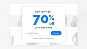 - Generates a pop-up window in which you are asked to enter your email address, and highlights the “send” button to receive, for example, a discount or other intriguing information.